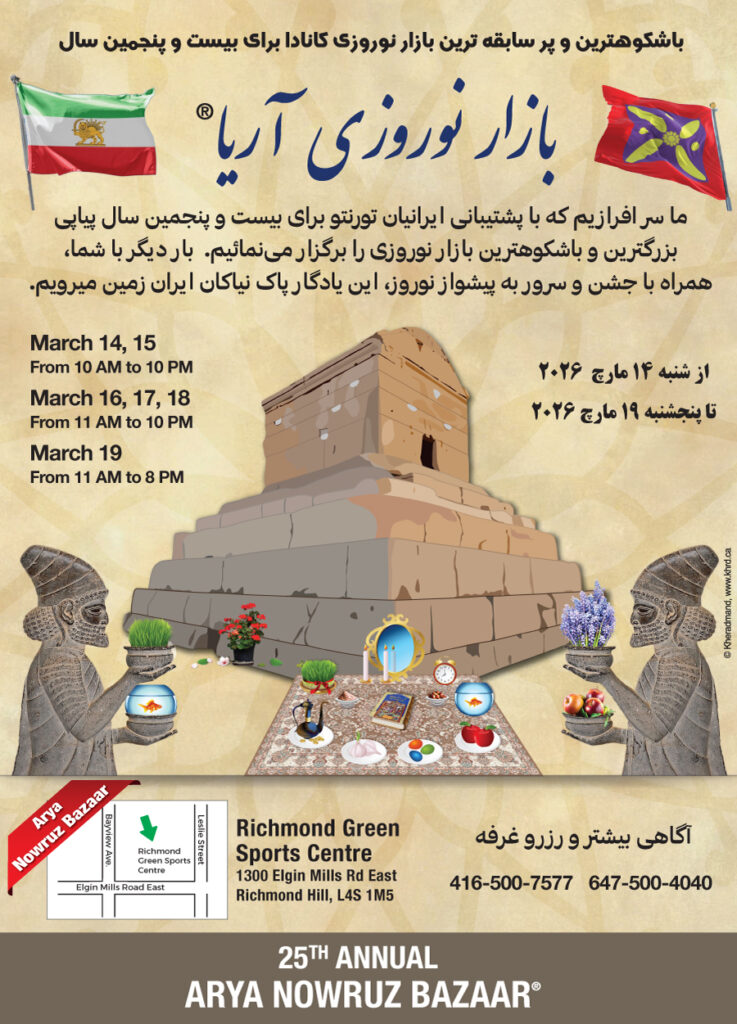 Our team is proud that for twenty-four consecutive years is organizing Nowruz Bazaar. We are excited to announce that our 25th annual Bazaar will be a 6 days event per below schedule: